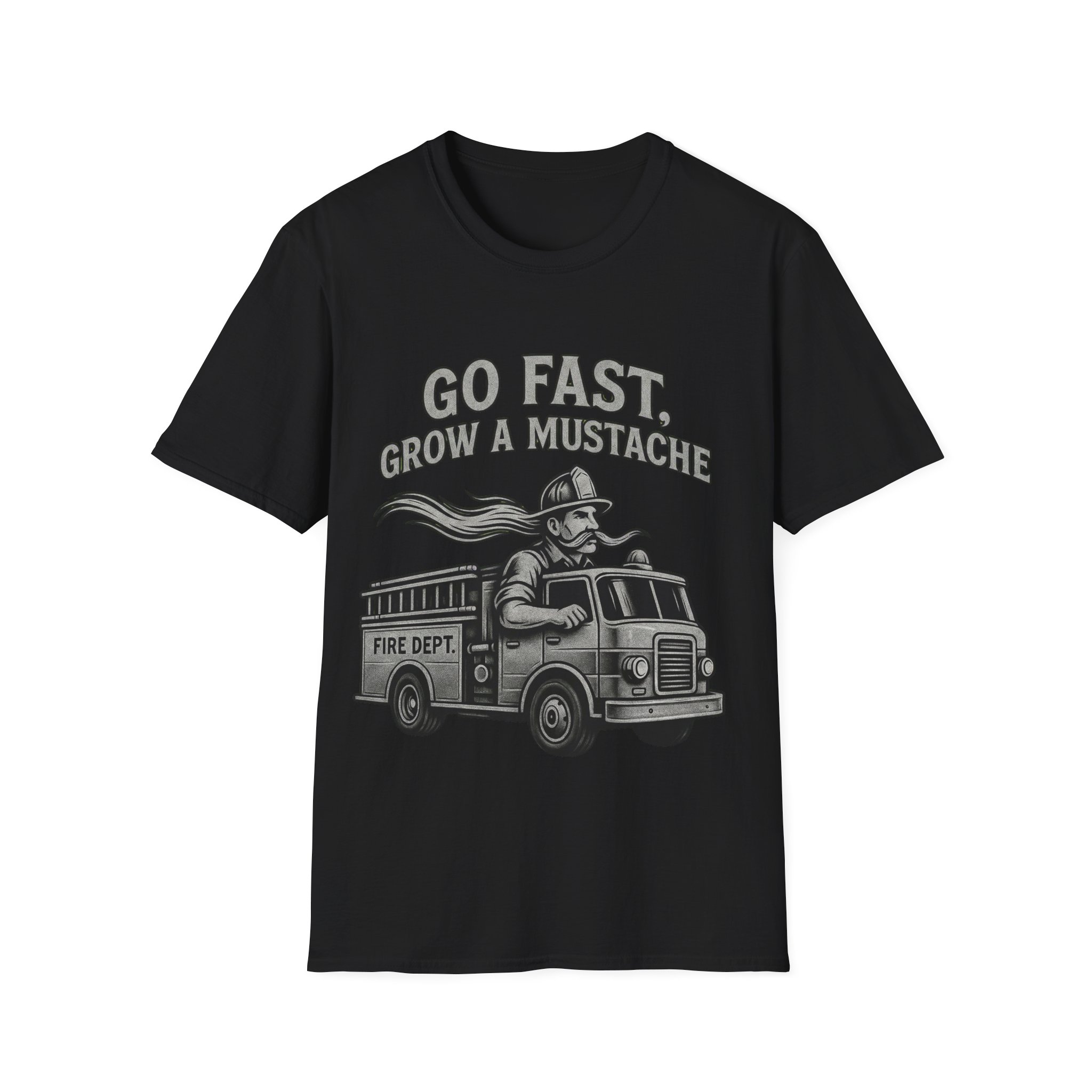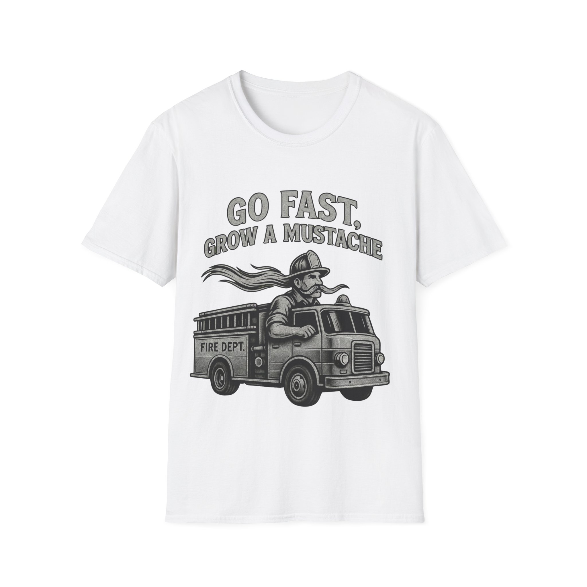 Slide into a soft, lightweight tee that tells a playful story on the chest: a mustachioed firefighter racing a vintage engine under the rallying line “GO FAST, GROW A MUSTACHE.” The grayscale illustration feels nostalgic and hand-drawn, the kind of graphic that sparks smiles and starts conversations. Wear it for casual weekends, community events, or when you want to add a touch of tongue-in-cheek charm to the day. The breathable ring-spun cotton and classic crew cut keep the focus on comfort while the thoughtful printing methods keep the artwork crisp and lively. This shirt settles into your rotation easily—pair it with worn denim or a chore jacket, and let the illustration do the talking at barbecues, fundraisers, or laid-back meetups.